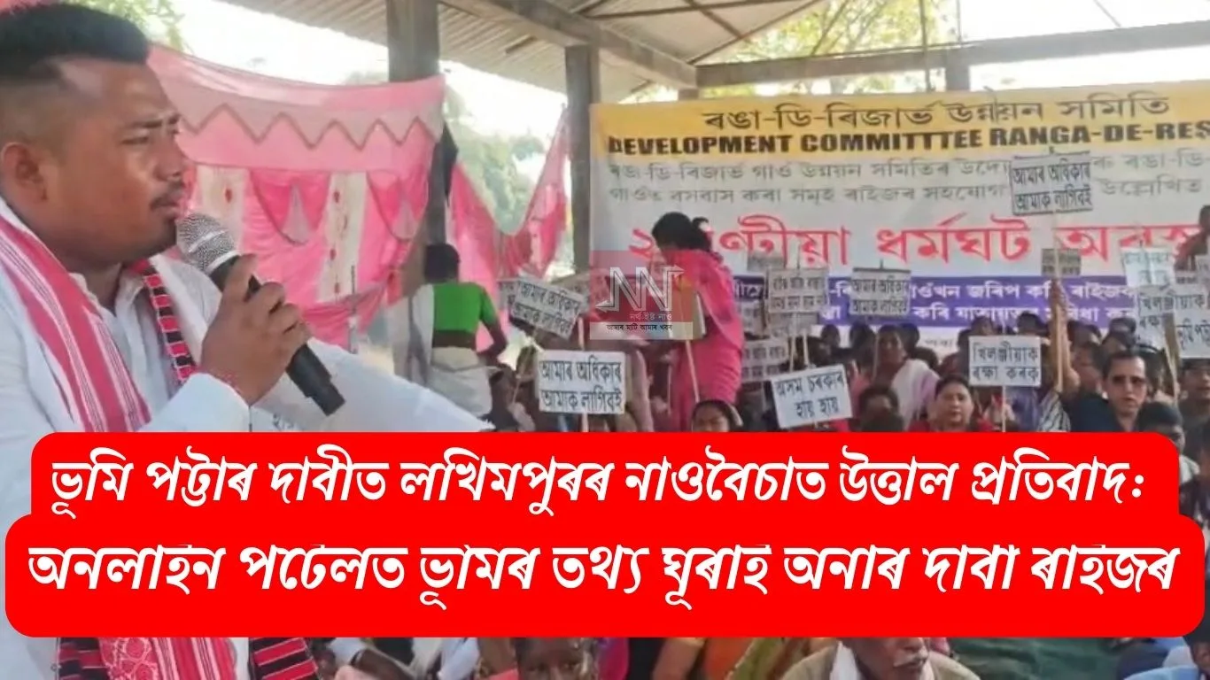 ভূমি পট্টাৰ দাবীত লখিমপুৰৰ নাওবৈচাত উত্তাল প্ৰতিবাদ: অনলাইন পৰ্টেলত ভূমিৰ তথ্য ঘূৰাই অনাৰ দাবী ৰাইজৰ