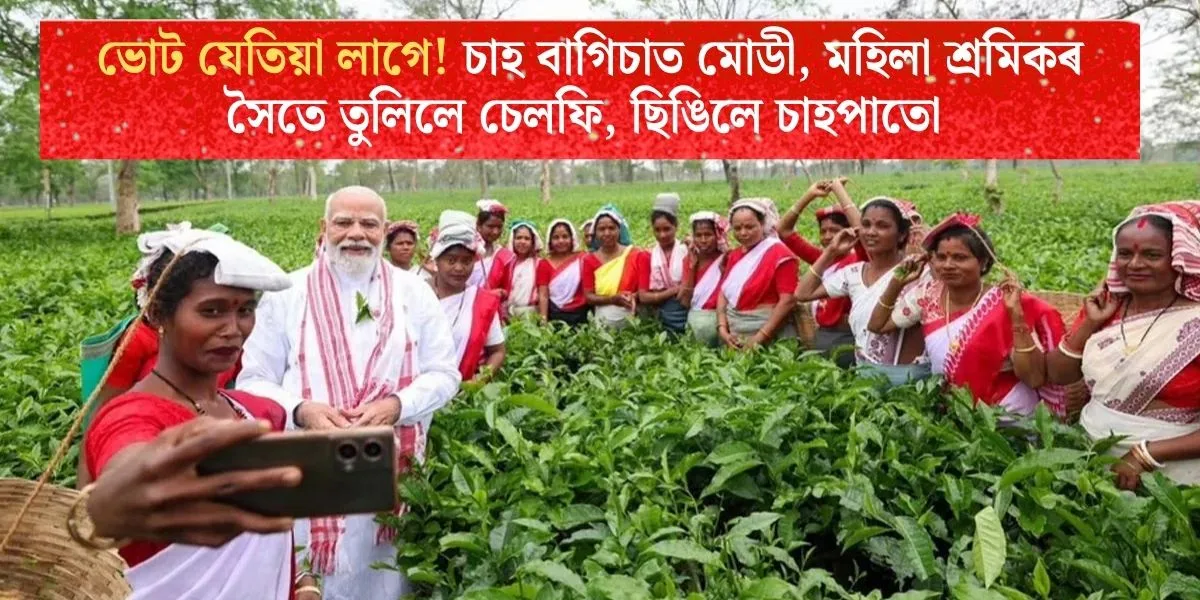 ভোট যেতিয়া লাগে! চাহ বাগিচাত মোডী, মহিলা শ্ৰমিকৰ সৈতে তুলিলে চেলফি, ছিঙিলে চাহপাতো