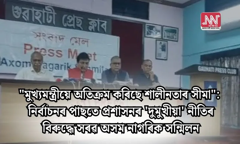 ৰাজ্যত বিধানসভা নিৰ্বাচনৰ ভোটগ্ৰহণ প্ৰক্ৰিয়া সমাপ্ত হোৱাৰ পাছতো মুখ্যমন্ত্ৰী হিমন্ত বিশ্ব শৰ্মাই সংবাদ মাধ্যম আৰু বিৰোধী ৰাজনৈতিক দলৰ প্ৰাৰ্থীৰ প্ৰতি প্ৰদৰ্শন কৰা ‘অসহিষ্ণু’ আচৰণক লৈ তীব্ৰ উদ্বেগ প্ৰকাশ কৰিছে অসম চিভিল ছ’চাইটিয়ে। আজি এক প্ৰেছ বিজ্ঞপ্তিযোগে সংগঠনটোৱে নিৰ্বাচন আয়োগৰ নিৰপেক্ষতাক লৈয়ো কেতবোৰ গুৰুতৰ প্ৰশ্ন উত্থাপন কৰে। বিশেষকৈ বিৰোধী প্ৰাৰ্থী লুৰিণজ্যোতি গগৈ, কুনকি চৌধুৰী আৰু তেওঁলোকৰ […] The post নিৰ্বাচনৰ পাছত মুখ্যমন্ত্ৰীৰ অসহিষ্ণুতা আৰু প্ৰশাসনৰ পক্ষপাতিত্বক লৈ গভীৰ উদ্বেগ প্ৰকাশ অসম চিভিল ছ’চাইটিৰ appeared first on NORTHEAST NOW (Assamese) .