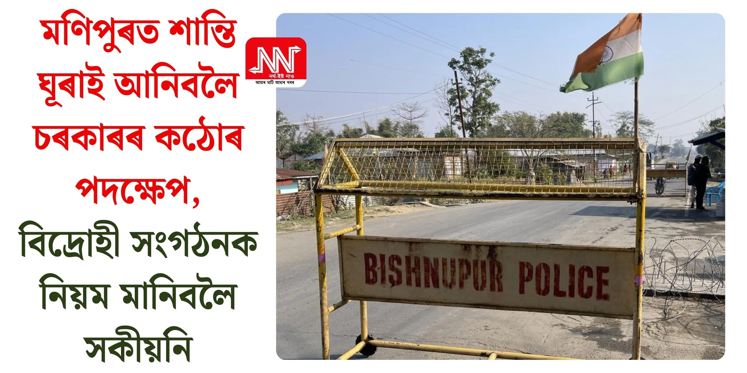 মণিপুৰত শান্তি আৰু স্থিৰতা বজাই ৰখাৰ বাবে কেন্দ্ৰীয় গৃহ পৰিক্ৰমা মন্ত্ৰালয় আৰু ৰাজ্য চৰকাৰে এক গুৰুত্বপূৰ্ণ পদক্ষেপ গ্ৰহণ কৰিছে। শেহতীয়াকৈ অনুষ্ঠিত হোৱা দুদিনীয়া পৰ্যালোচনা বৈঠকৰ অন্তত মেইটেই আৰু কুকি-জো বিদ্ৰোহী গোটসমূহক স্পষ্টকৈ সকীয়াই দিয়া হৈছে যে তেওঁলোকে যদি চৰকাৰৰ ভূমি নিয়ম বা গ্রাউণ্ড ৰুল উলংঘা কৰে, তেন্তে তেওঁলোকৰ বিৰুদ্ধে কঠোৰ আইনী ব্যৱস্থা গ্ৰহণ কৰা হ’ব। […] The post মণিপুৰত শান্তি ঘূৰাই আনিবলৈ চৰকাৰৰ কঠোৰ পদক্ষেপ, বিদ্ৰোহী সংগঠনক নিয়ম মানিবলৈ সকীয়নি appeared first on NORTHEAST NOW (Assamese) .