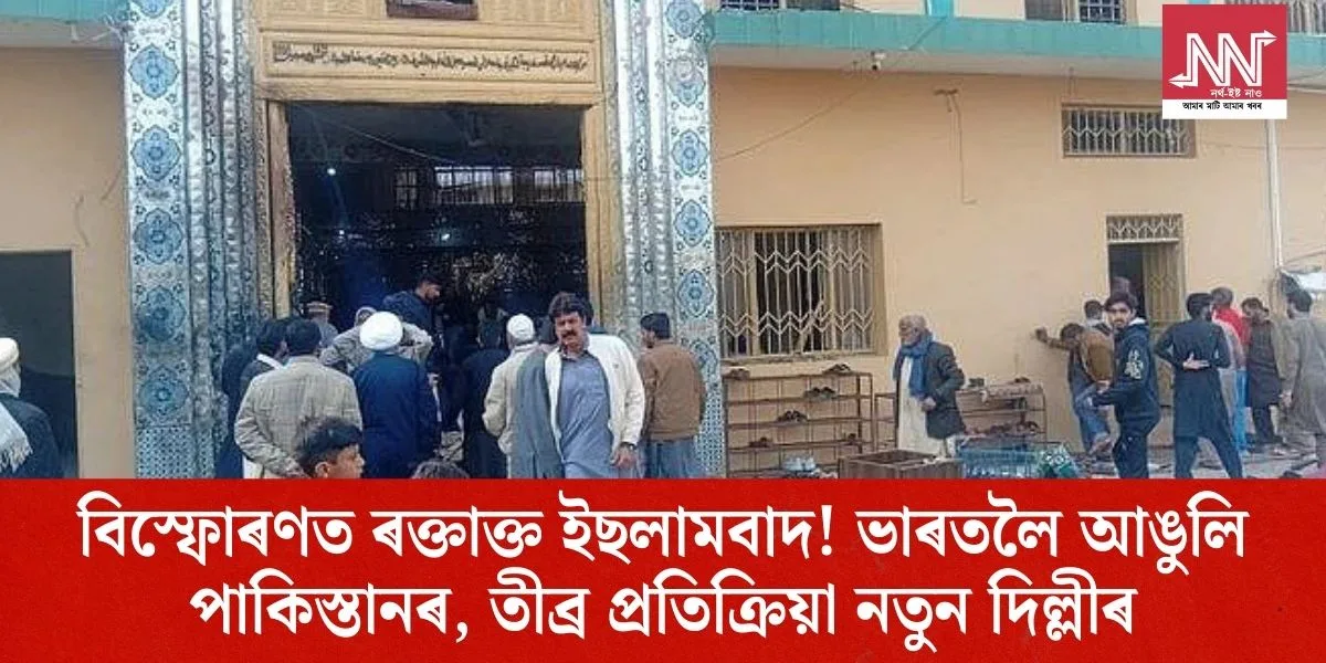 শুকুৰবাৰৰ জুম্মাৰ নামাজৰ সময়ত ভয়ংকৰ আত্মঘাতী বিস্ফোৰণে জোকাৰি যায় পাকিস্তানৰ ৰাজধানী ইছলামবাদ। এই পৰ্যন্ত আনুষ্ঠানিকভাৱে মৃত্যু হোৱা লোকৰ সংখ্যা ৩১ জন। আহত হৈছে ১৫০ জনতকৈ অধিক। এই ঘটনাৰ পাছত পাকিস্তানে পুনৰ ভাৰত আৰু আফগানিস্তানৰ পিনে অভিযোগৰ আঙুলি টোৱাইছে। অৱশ্যে নতুন দিল্লীয়ে এই অভিযোগ সম্পূৰ্ণ ভিত্তিহীন বুলি খাৰিজ কৰিছে। আফগানিস্তানৰ তালিবান চৰকাৰৰ পৰাও একে সুৰ শুনা […] The post বিস্ফোৰণত ৰক্তাক্ত ইছলামবাদ! ভাৰতলৈ আঙুলি পাকিস্তানৰ, তীব্ৰ প্ৰতিক্ৰিয়া নতুন দিল্লীৰ appeared first on NORTHEAST NOW (Assamese) .