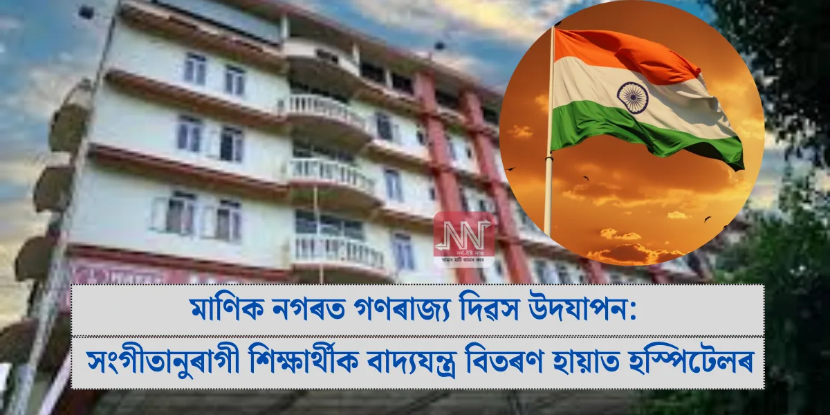 মাণিক নগৰত গণৰাজ্য দিৱস উদযাপন: সংগীতানুৰাগী শিক্ষাৰ্থীক বাদ্যযন্ত্ৰ বিতৰণ হায়াত হস্পিটেলৰ