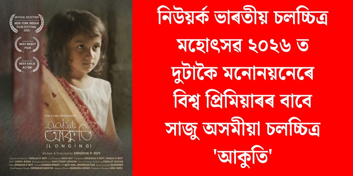 পি কে আৰ ফিল্মছৰ বেনাৰত স্নিগ্ধা পি ৰয়ৰ দ্বাৰা পৰিচালিত পূৰ্ণদৈৰ্ঘ্যৰ চলচ্চিত্ৰ ‘আকুতি’ ‘নিউয়ৰ্ক ভাৰতীয় চলচ্চিত্ৰ মহোৎসৱ ২০২৬’ লৈ আনুষ্ঠানিকভাৱে নিৰ্বাচিত হৈছে। চলচ্চিত্ৰ মহোৎসৱখনত ‘আকুতি’ৰ বিশ্ব প্ৰিমিয়াৰ অনুষ্ঠিত হ’ব। ইতিমধ্যে চলচ্চিত্ৰখনে দুটাকৈ গুৰুত্বপূৰ্ণ মনোনয়ন লাভ কৰিবলৈ সক্ষম হৈছে— শ্ৰেষ্ঠ নৱনিৰ্মিত চলচ্চিত্ৰ (আৰু শ্ৰেষ্ঠ শিশু অভিনেতা। স্নিগ্ধা পি ৰয়ৰ দ্বাৰা পৰিচালিত ‘আকুতি’য়ে অসমৰ চহকী কাহিনী কথনৰ […] The post নিউয়ৰ্ক ভাৰতীয় চলচ্চিত্ৰ মহোৎসৱ ২০২৬ ত দুটাকৈ মনোনয়নেৰে বিশ্ব প্ৰিমিয়াৰৰ বাবে সাজু অসমীয়া চলচ্চিত্ৰ ‘আকুতি’ appeared first on NORTHEAST NOW (Assamese) .