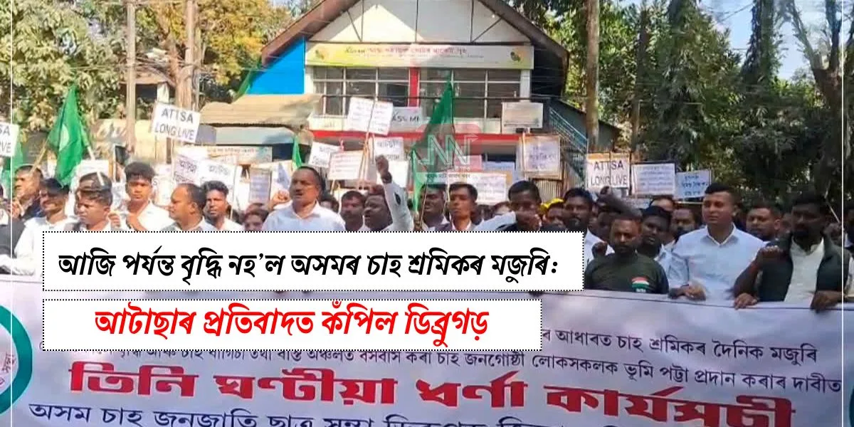 আজি পৰ্যন্ত বৃদ্ধি নহ’ল অসমৰ চাহ শ্ৰমিকৰ মজুৰি: আটাছাৰ প্ৰতিবাদত কঁপিল ডিব্ৰুগড়