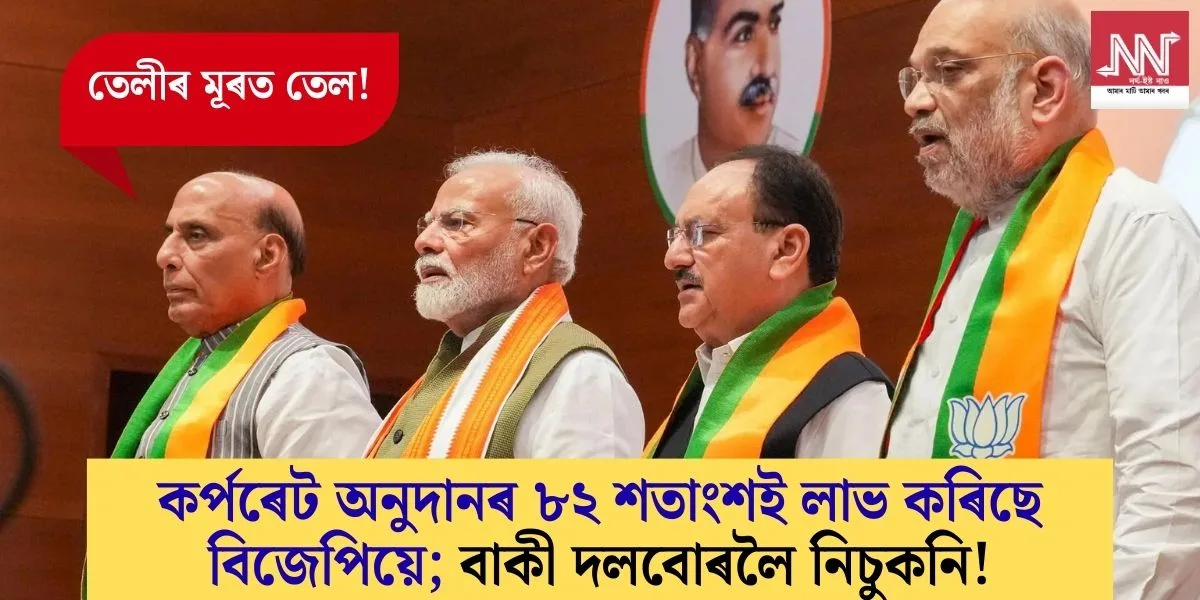 কৰ্পৰেট অনুদানৰ ৮২ শতাংশই লাভ কৰিছে বিজেপিয়ে; বাকী দলবোৰলৈ নিচুকনি!