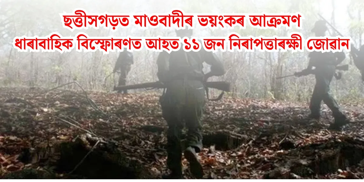 ছত্তীসগড়ত মাওবাদীৰ ভয়ংকৰ আক্ৰমণ: ধাৰাবাহিক বিস্ফোৰণত আহত ১১ জন নিৰাপত্তাৰক্ষী জোৱান