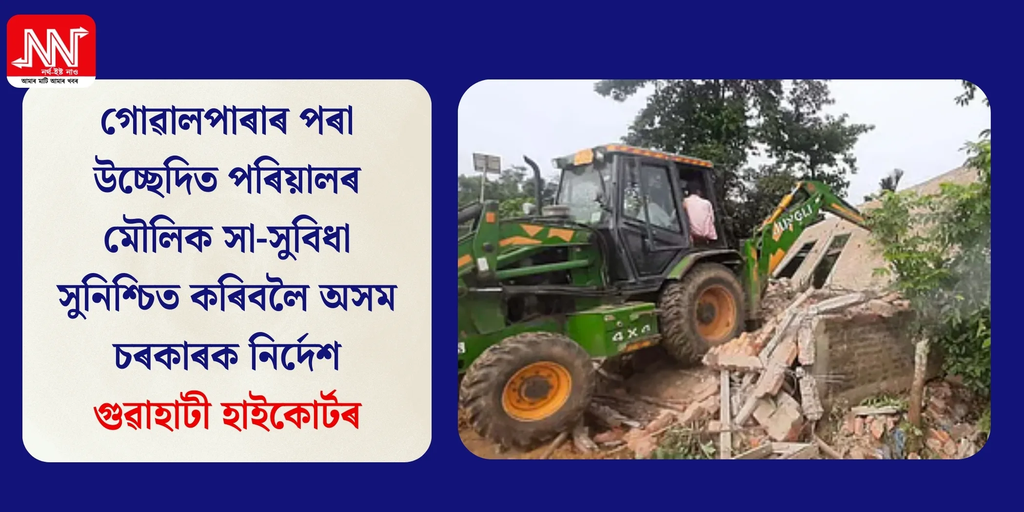 গোৱালপাৰা জিলাৰ হাছিলা বিল অঞ্চলত যোৱা বৰ্ষৰ জুন মাহত চলোৱা উচ্ছেদ অভিযানত ক্ষতিগ্ৰস্ত হোৱা পৰিয়ালসমূহৰ বাবে গুৱাহাটী উচ্চ ন্যায়ালয়ে এক অত্যন্ত গুৰুত্বপূৰ্ণ ৰায় প্ৰদান কৰিছে। ন্যায়ালয়ে স্পষ্টকৈ জনাইছে যে ভাৰতীয় সংবিধানৰ জীৱনৰ অধিকাৰৰ ভিতৰত মৰ্যাদাৰে জীয়াই থকা, বিশুদ্ধ খোৱাপানী, অনাময় ব্যৱস্থা আৰু মৌলিক চিকিৎসাৰ অধিকাৰ অন্তৰ্ভুক্ত। এই পৰিপ্ৰেক্ষিতত উচ্ছেদিত লোকসকলক অতি সোনকালে খোৱাপানী, উপযুক্ত চিকিৎসা […] The post গোৱালপাৰাৰ পৰা উচ্ছেদিত পৰিয়ালৰ মৌলিক সা-সুবিধা সুনিশ্চিত কৰিবলৈ অসম চৰকাৰক নিৰ্দেশ গুৱাহাটী হাইকোৰ্টৰ appeared first on NORTHEAST NOW (Assamese) .