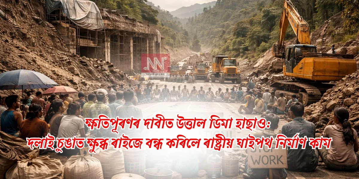 ক্ষতিপূৰণৰ দাবীত উত্তাল ডিমা হাছাও: দলাই চুঙাত ক্ষুব্ধ ৰাইজে বন্ধ কৰিলে ৰাষ্ট্ৰীয় ঘাইপথ নিৰ্মাণ কাম