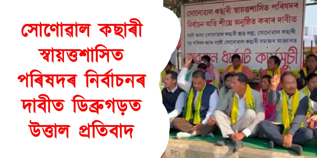সোণোৱাল কছাৰী স্বায়ত্তশাসিত পৰিষদৰ নিৰ্বাচনৰ দাবীত ডিব্ৰুগড়ত উত্তাল প্ৰতিবাদ