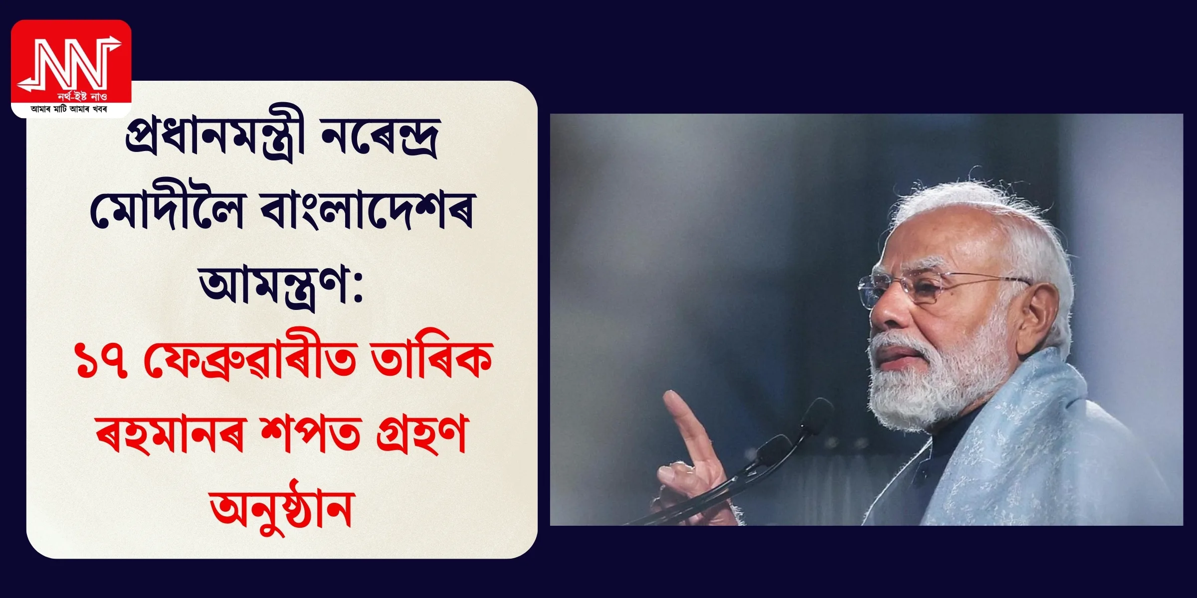 প্ৰধানমন্ত্ৰী নৰেন্দ্ৰ মোদীলৈ বাংলাদেশৰ আমন্ত্ৰণ: ১৭ ফেব্ৰুৱাৰীত তাৰিক ৰহমানৰ শপত গ্ৰহণ অনুষ্ঠান