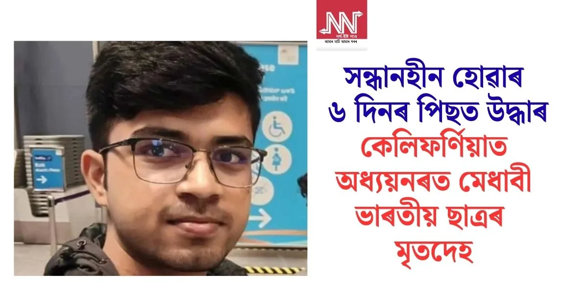 সন্ধানহীন হোৱাৰ ৬ দিনৰ পিছত উদ্ধাৰ কেলিফৰ্ণিয়াত অধ্যয়নৰত মেধাবী ভাৰতীয় ছাত্ৰৰ মৃতদেহ