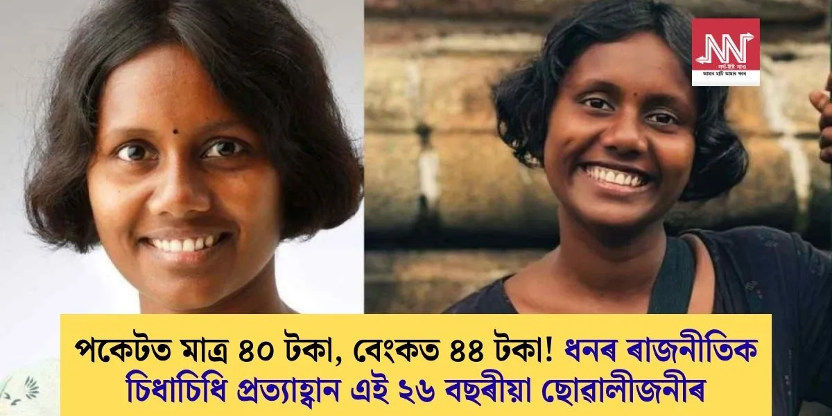 পকেটত মাত্ৰ ৪০ টকা, বেংকত ৪৪ টকা! ধনৰ ৰাজনীতিক চিধাচিধি প্ৰত্যাহ্বান এই ২৬ বছৰীয়া ছোৱালীজনীৰ