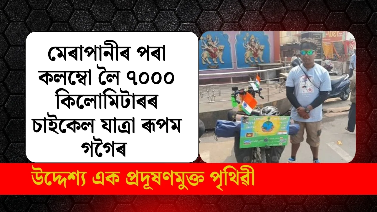 মেৰাপানীৰ পৰা কলম্বো লৈ ৭০০০ কিলোমিটাৰৰ চাইকেল যাত্ৰা ৰূপম গগৈৰ : উদ্দেশ্য এক প্ৰদূষণমুক্ত পৃথিৱী