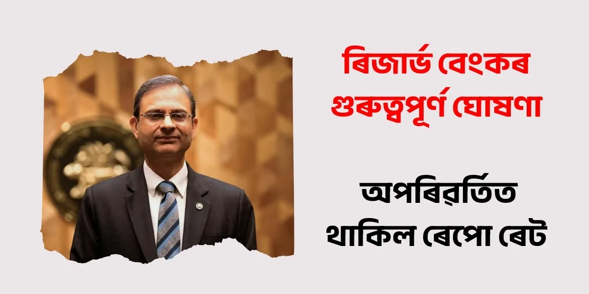 ৰিজাৰ্ভ বেংকৰ গুৰুত্বপূৰ্ণ ঘোষণা: অপৰিৱৰ্তিত থাকিল ৰেপো ৰেট