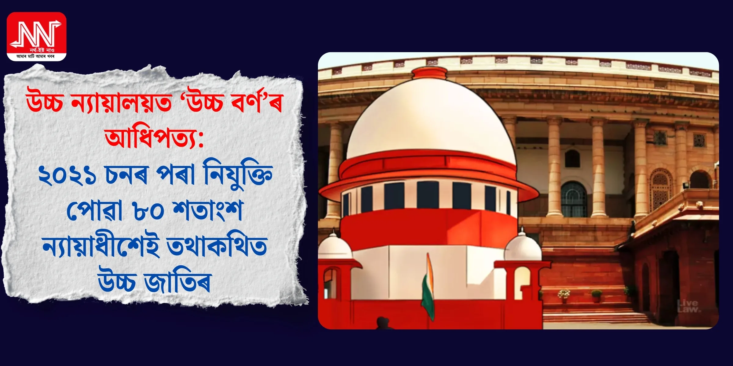 উচ্চ ন্যায়ালয়ৰ নিযুক্তিৰ ক্ষেত্ৰত উচ্চ জাতিৰ আধিপত্য আৰু সামাজিক বৈচিত্ৰ্যৰ অভাৱৰ সন্দৰ্ভত এক উদ্বেগজনক তথ্য পোহৰলৈ আহিছে। শেহতীয়াকৈ চৰকাৰে সংসদত দাখিল কৰা এক প্ৰতিবেদন অনুসৰি ২০২১ চনৰ পৰা উচ্চ ন্যায়ালয়ত নিযুক্তি পোৱা মুঠ ন্যায়াধীশসকলৰ প্ৰায় ৮০ শতাংশই তথাকথিত উচ্চ জাতিৰ লোক। কেন্দ্ৰীয় মন্ত্ৰী অৰ্জুন ৰাম মেঘৱালে ৰাজ্যসভাত এক লিখিত উত্তৰৰ জৰিয়তে এই তথ্য সদৰী কৰিছে। […] The post উচ্চ ন্যায়ালয়ত ‘উচ্চ বৰ্ণ’ৰ আধিপত্য: ২০২১ চনৰ পৰা নিযুক্তি পোৱা ৮০ শতাংশ ন্যায়াধীশেই তথাকথিত উচ্চ জাতিৰ appeared first on NORTHEAST NOW (Assamese) .
