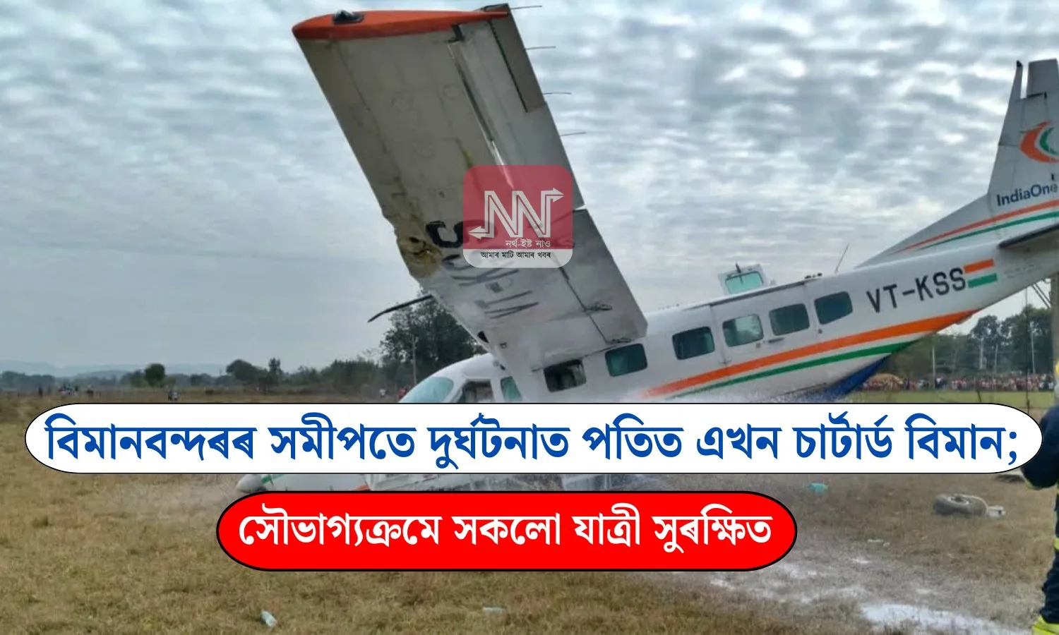 বিমানবন্দৰৰ সমীপতে দুৰ্ঘটনাত পতিত এখন চাৰ্টাৰ্ড বিমান; সৌভাগ্যক্ৰমে সকলো যাত্ৰী সুৰক্ষিত