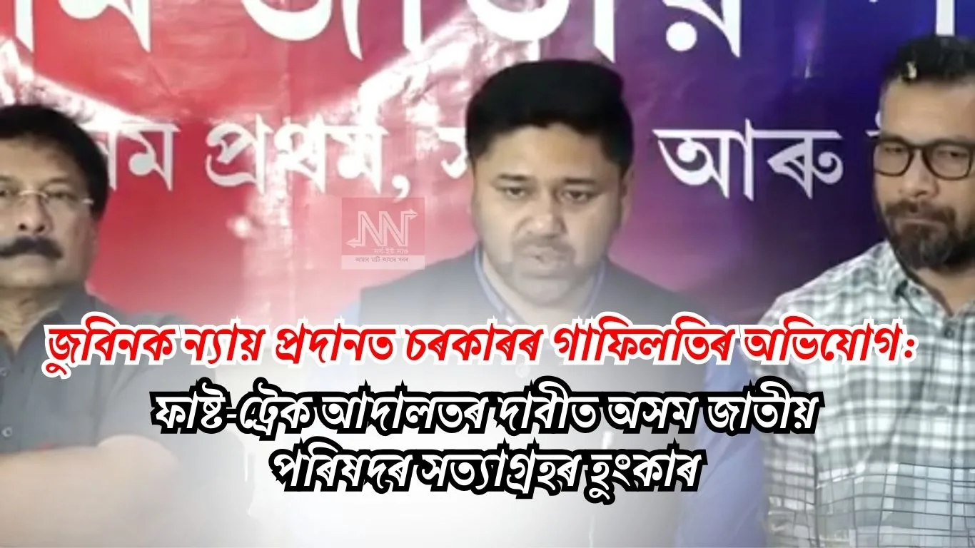 ৰাজ্য চৰকাৰ আৰু মুখ্যমন্ত্ৰীৰ বিৰুদ্ধে ‘জুবিন গাৰ্গৰ’ৰ হত্যাৰ ন্যায় প্ৰদানত চৰম গাফিলতি কৰাৰ গুৰুতৰ অভিযোগ উত্থাপন কৰিছে অসম জাতীয় পৰিষদে। সংবাদমেল যোগে দলটোৱে অভিযোগ কৰে যে, যোৱা ১২ ডিচেম্বৰত এছ.আই.টি.এ অভিযোগনামা দাখিল কৰাৰ দিনাই মুখ্যমন্ত্ৰীয়ে ফাষ্ট-ট্ৰেক আদালত গঠনৰ প্ৰতিশ্ৰুতি দিছিল। দুমাহ ন দিন অতিক্ৰম কৰাৰ পাছতো আজিলৈকে সেয়া কাৰ্যকৰী হোৱা নাই। দলটোৰ অভিযোগ অনুসৰি, ফাষ্ট-ট্ৰেক […] The post জুবিনক ন্যায় প্ৰদানত চৰকাৰৰ গাফিলতিৰ অভিযোগ: ফাষ্ট-ট্ৰেক আদালতৰ দাবীত অসম জাতীয় পৰিষদৰ সত্যাগ্ৰহৰ হুংকাৰ appeared first on NORTHEAST NOW (Assamese) .