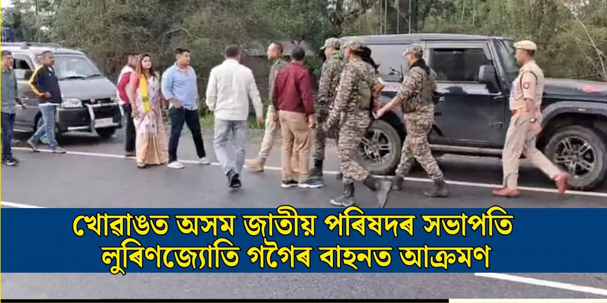 খোৱাঙত অসম জাতীয় পৰিষদৰ সভাপতি লুৰিণজ্যোতি গগৈৰ বাহনত আক্ৰমণ