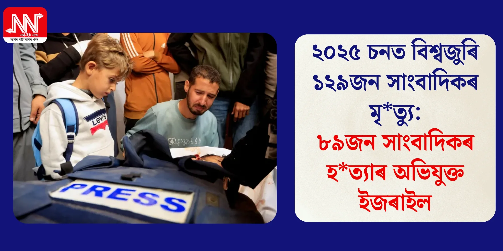 বিশ্বজুৰি সংবাদ মাধ্যমৰ স্বাধীনতা আৰু সাংবাদিকৰ নিৰাপত্তাৰ ওপৰত এক উদ্বেগজনক তথ্য পোহৰলৈ আহিছে। শেহতীয়া এক বাৰ্ষিক প্ৰতিবেদন অনুসৰি, ২০২৫ চনটো সাংবাদিকসকলৰ বাবে ১৯৯২ চনৰ পিছত আটাইতকৈ ভয়াৱহ বছৰ হিচাপে পৰিগণিত হৈছে। এই বৰ্ষত মুঠ ১২৯ জন সাংবাদিকে কৰ্তব্য পালনৰ সময়ত প্ৰাণ হেৰুৱাবলগীয়া হৈছে। কমিটি টু প্ৰটেক্ট জাৰ্নেলিষ্ট নামৰ আন্তঃৰাষ্ট্ৰীয় সংস্থাটোৱে প্ৰকাশ কৰা এই তথ্যই বৰ্তমানৰ […] The post ২০২৫ চনত বিশ্বজুৰি ১২৯জন সাংবাদিকৰ মৃত্যু: ৮৯জন সাংবাদিকৰ হত্যাৰ অভিযুক্ত ইজৰাইল appeared first on NORTHEAST NOW (Assamese) .