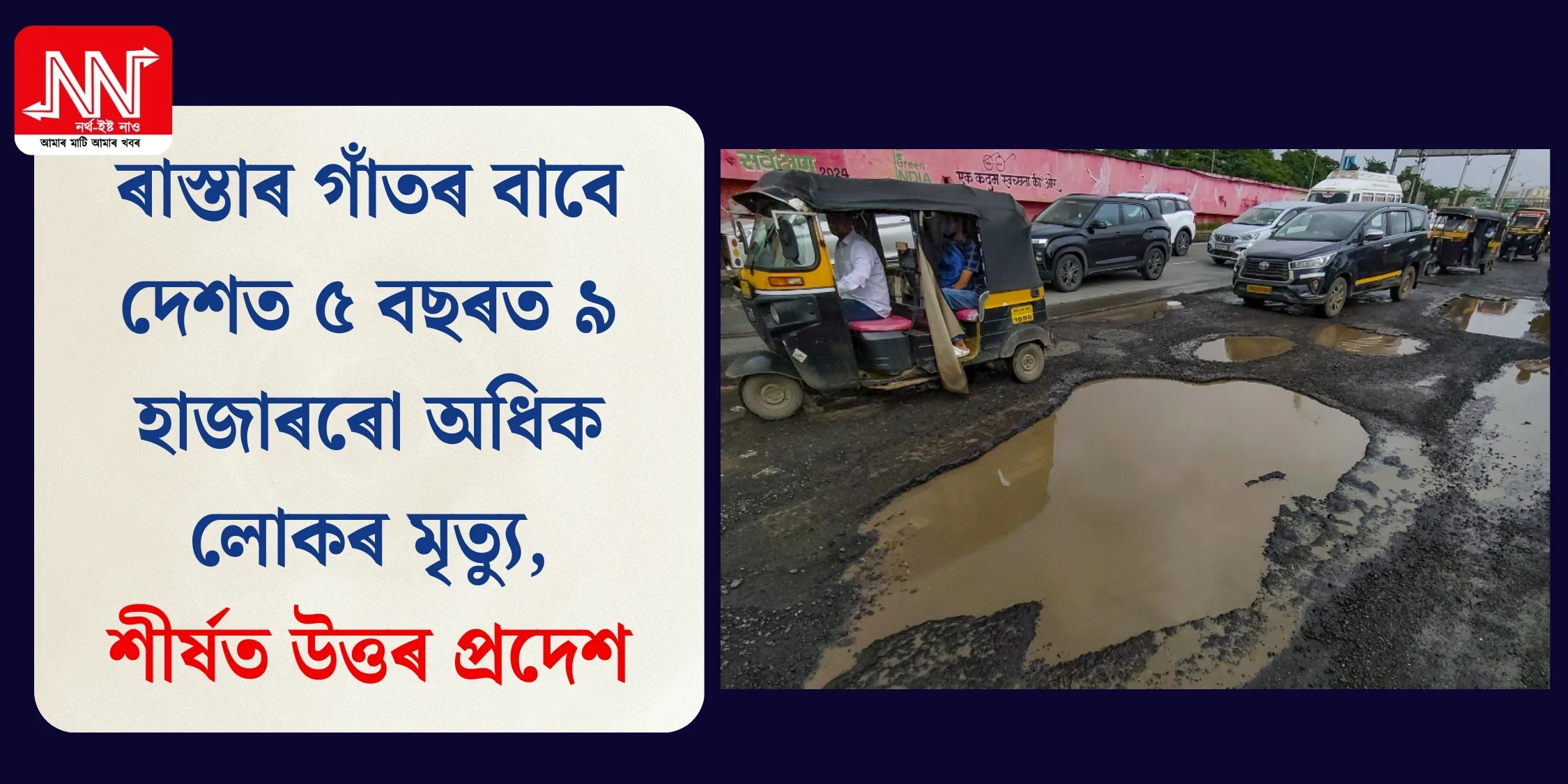 বিগত পাঁচ বছৰত দেশৰ ৰাস্তাত থকা গাঁতৰ ফলত হোৱা পথ দুৰ্ঘটনা আৰু মৃত্যুৰ সংখ্যাই এক উদ্বেগজনক পৰিস্থিতিৰ সৃষ্টি কৰিছে। পৰিবহণ মন্ত্ৰালয়ে লোকসভাত দাখিল কৰা শেহতীয়া তথ্য অনুসৰি, ২০২০ চনৰ পৰা ২০২৪ চনৰ ভিতৰত সমগ্ৰ দেশত মুঠ ৯,৪৩৮ জন লোকে গাঁতত পৰি প্ৰাণ হেৰুৱাইছে। এই তথ্যই স্পষ্ট কৰি দিছে যে ২০২০ চনৰ তুলনাত ২০২৪ চনত মৃত্যুৰ […] The post ৰাস্তাৰ গাঁতৰ বাবে দেশত ৫ বছৰত ৯ হাজাৰৰো অধিক লোকৰ মৃত্যু, শীৰ্ষত উত্তৰ প্ৰদেশ appeared first on NORTHEAST NOW (Assamese) .