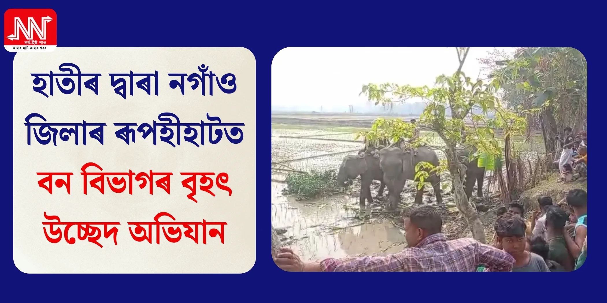 হাতীৰ দ্বাৰা নগাঁও জিলাৰ ৰূপহীহাটত বন বিভাগৰ বৃহৎ উচ্ছেদ অভিযান