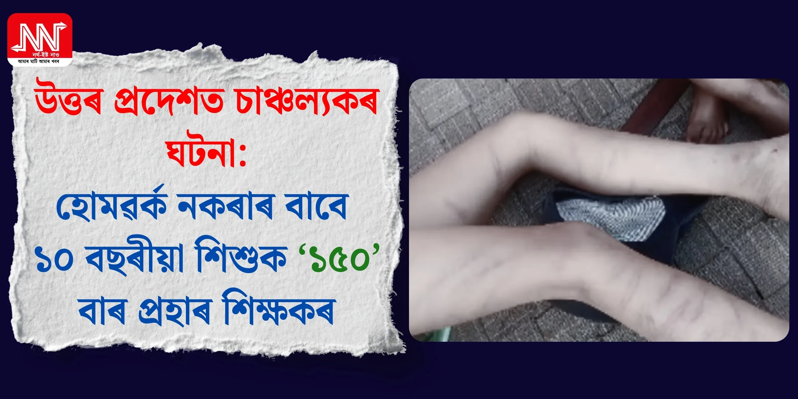 উত্তৰ প্ৰদেশত চাঞ্চল্যকৰ ঘটনা: হোমৱৰ্ক নকৰাৰ বাবে ১০ বছৰীয়া শিশুক ‘১৫০’ বাৰ প্ৰহাৰ শিক্ষকৰ