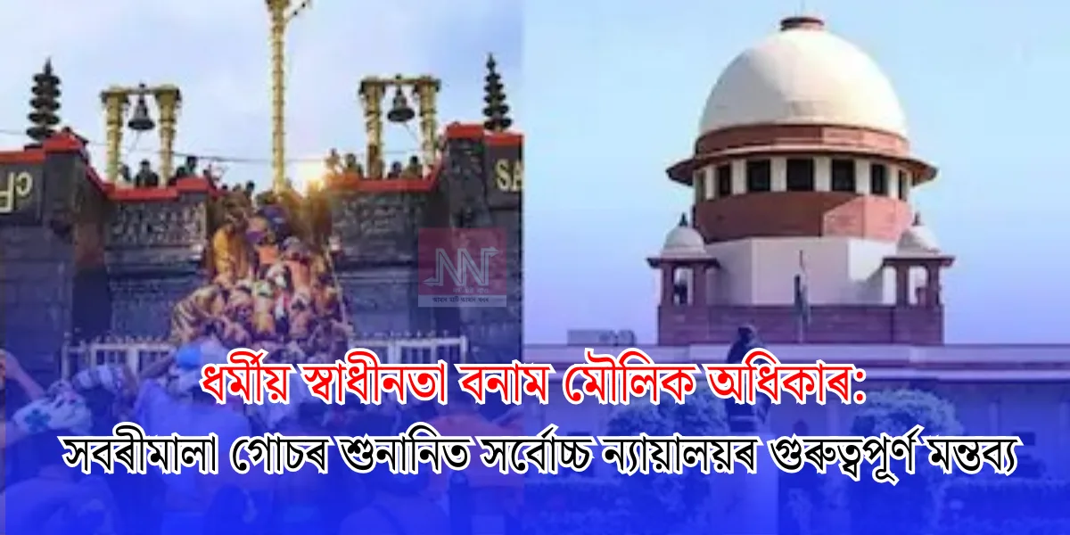 ভাৰতৰ সৰ্বোচ্চ ন্যায়ালয়ে সৱৰীমালা গোচৰৰ শেহতীয়া শুনানিত এক অতি গুৰুত্বপূৰ্ণ নিৰীক্ষণ দাঙি ধৰিছে। সমাজ সংস্কাৰ আৰু ধৰ্মীয় স্বাধীনতাৰ মাজৰ ভাৰসাম্য সন্দৰ্ভত মন্তব্য কৰি ন্যায়ালয়ে স্পষ্ট কৰি দিয়ে যে কেৱল সংস্কাৰৰ নাম লৈ কোনো এটা ধৰ্মৰ মূল সত্তা বা অপৰিহাৰ্য প্ৰথাক একেবাৰে নিঃশেষ বা অন্তঃসাৰশূন্য কৰি পেলাব নোৱাৰি। ধৰ্মীয় বিশ্বাস আৰু সাংবিধানিক মৌলিক অধিকাৰৰ মাজত চলি […] The post ধৰ্মীয় স্বাধীনতা বনাম মৌলিক অধিকাৰ: সৱৰীমালা গোচৰৰ শুনানিত সৰ্বোচ্চ ন্যায়ালয়ৰ গুৰুত্বপূৰ্ণ মন্তব্য appeared first on NORTHEAST NOW (Assamese) .