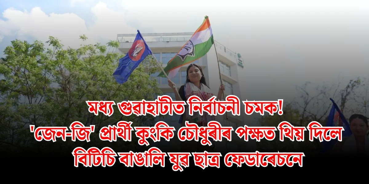 আগন্তুক বিধানসভা নিৰ্বাচনৰ পূৰ্বে মধ্য গুৱাহাটী সমষ্টিৰ প্ৰাৰ্থী কুংকি চৌধুৰীলৈ সদৌ বিটিচি বাঙালি যুৱ ছাত্ৰ ফেডাৰেচনৰ কেন্দ্ৰীয় সমিতিয়ে আনুষ্ঠানিকভাৱে নৈতিক সমৰ্থন আগবঢ়াইছে। দেওবাৰে এক বিবৃতিযোগে সংগঠনটোৱে উচ্চশিক্ষিত আৰু নৱপ্ৰজন্মৰ প্ৰতিনিধি হিচাপে চৌধুৰীক বিধানসভালৈ নিৰ্বাচিত কৰাৰ প্ৰয়োজনীয়তাৰ ওপৰত বিশেষ গুৰুত্ব আৰোপ কৰিছে। নিৰ্বাচনৰ প্ৰাকক্ষণত ছাত্ৰ সংগঠনটোৰ এই সমৰ্থনে প্ৰাৰ্থীগৰাকীৰ নিৰ্বাচনী প্ৰচাৰ অভিযানলৈ এক নতুন গতি কঢ়িয়াই […] The post মধ্য গুৱাহাটীত নিৰ্বাচনী চমক! ‘জেন-জি’ প্ৰাৰ্থী কুংকি চৌধুৰীৰ পক্ষত থিয় দিলে বিটিচি বাঙালি যুৱ ছাত্ৰ ফেডাৰেচনে appeared first on NORTHEAST NOW (Assamese) .