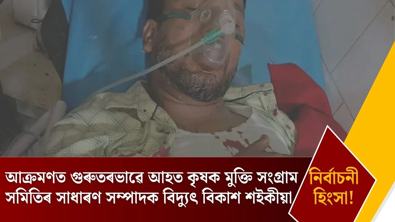 ৰাজ্যত ভোটগ্ৰহণৰ পূৰ্বে কৃষক মুক্তি সংগ্ৰাম সমিতিৰ সাধাৰণ সম্পাদক বিদ্যুৎ বিকাশ শইকীয়া আক্ৰমণত গুৰুতৰভাৱে আহত হোৱা বুলি জানিব পৰা গৈছে। বৰ্তমান তেওঁ চিকিৎসাধীন হৈ আছে। বাতৰি অনুসৰি, নিৰ্বাচনৰ প্ৰাকমুহূৰ্তত শইকীয়া আক্ৰমণৰ বলি হৈছে। এই ঘটনাত সংগঠনটোৰ নেতৃত্বই তীব্ৰ প্ৰতিক্ৰিয়াৰ প্ৰকাশ কৰিছে। কৃষক মুক্তি সংগ্ৰাম সমিতিৰ প্ৰাক্তন সভাপতি তথা বৰ্তমান ৰাইজৰ দলৰ সভাপতি অখিল গগৈয়ে এই […] The post নিৰ্বাচনৰ হিংসা! আক্ৰমণত গুৰুতৰভাৱে আহত কৃষক মুক্তি সংগ্ৰাম সমিতিৰ সাধাৰণ সম্পাদক বিদ্যুৎ বিকাশ শইকীয়া appeared first on NORTHEAST NOW (Assamese) .