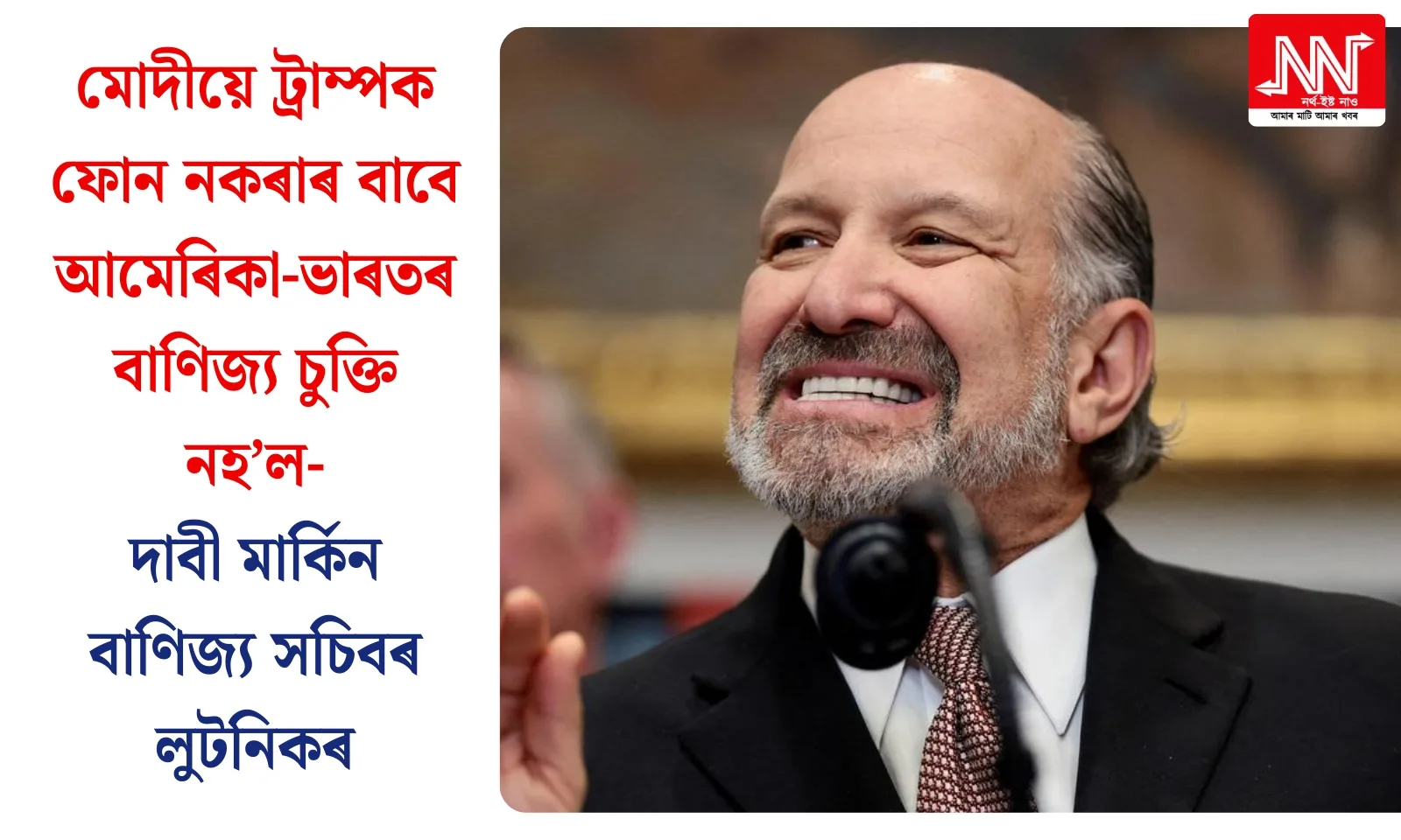আমেৰিকা যুক্তৰাষ্ট্ৰৰ বাণিজ্য সচিব হাৱাৰ্ড লুটনিকে শেহতীয়াকৈ এক চাঞ্চল্যকৰ দাবী কৰিছে। তেওঁৰ মতে, প্ৰধানমন্ত্ৰী নৰেন্দ্ৰ মোদীয়ে আমেৰিকাৰ ৰাষ্ট্ৰপতি ড’নাল্ড ট্ৰাম্পলৈ ফোন নকৰাৰ বাবেই দুয়োখন দেশৰ মাজত হ’বলগীয়া গুৰুত্বপূৰ্ণ বাণিজ্যিক চুক্তিখন চূড়ান্ত নহ’ল। শেহতীয়াকৈ এটা প’ডকাষ্টত ভাগ লৈ লুটনিকে এই তথ্য ৰাজহুৱা কৰিছে। তেওঁ জানিবলৈ দিছে যে চুক্তিখনৰ সকলো চৰ্ত আৰু নীতি-নিয়ম প্ৰস্তুত কৰি থোৱা হৈছিল […] The post মোদীয়ে ট্ৰাম্পক ফোন নকৰাৰ বাবে আমেৰিকা-ভাৰতৰ বাণিজ্য চুক্তি নহ’ল- দাবী মাৰ্কিন বাণিজ্য সচিবৰ লুটনিকৰ appeared first on NORTHEAST NOW (Assamese) .