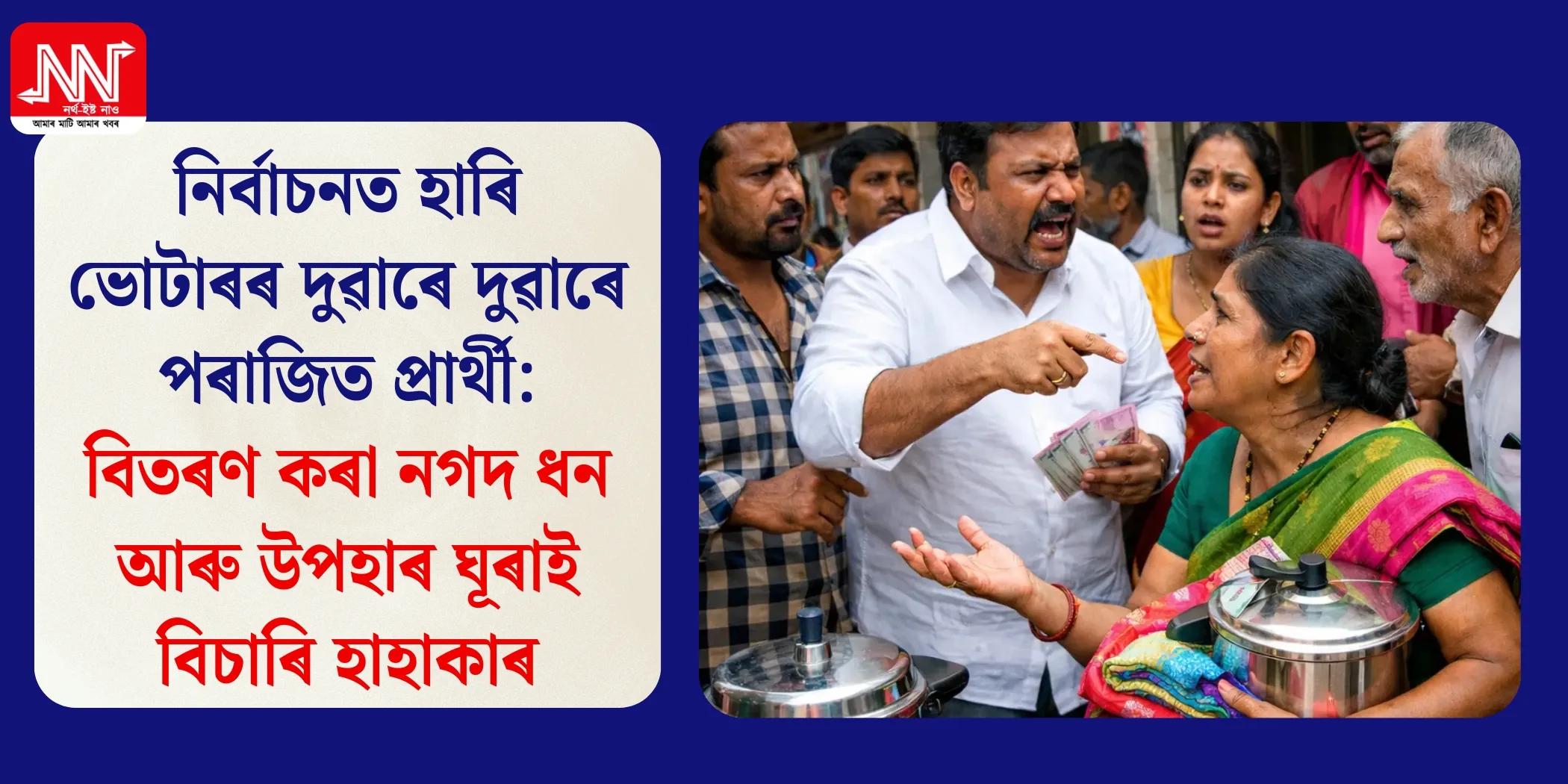 নিৰ্বাচনত হাৰি ভোটাৰৰ দুৱাৰে দুৱাৰে পৰাজিত প্ৰাৰ্থী: বিতৰণ কৰা নগদ ধন আৰু উপহাৰ ঘূৰাই বিচাৰি হাহাকাৰ
