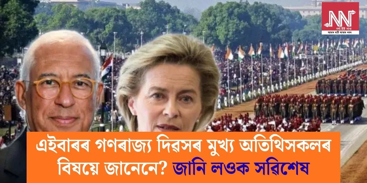 ভাৰতে ৭৭ সংখ্যক গণৰাজ্য দিৱস উদযাপন কৰিছে, যিটো দিৱসত বন্দে মাতৰমৰ ১৫০ বছৰীয়া জয়ন্তীও উদযাপন কৰা হৈছে। এই উদযাপনৰ মুখ্য অতিথি হিচাপে আছে ইউৰোপীয় কমিছনৰ সভানেত্ৰী উৰ্চুলা ভন ডেৰ লেন আৰু ইউৰোপীয় কাউন্সিলৰ সভাপতি এণ্টনিঅ’ লুইছ ছান্টোছ দা কোষ্টা। এই ইউৰোপীয় নেতাসকল প্ৰধানমন্ত্ৰী নৰেন্দ্ৰ মোডীৰ আমন্ত্ৰণত ২৫ জানুৱাৰীৰ পৰা ২৭ জানুৱাৰীলৈ ভাৰত ভ্ৰমণলৈ আহিছে। ইউৰোপীয় […] The post এইবাৰৰ গণৰাজ্য দিৱসৰ মুখ্য অতিথিসকলৰ বিষয়ে জানেনে? জানি লওক সৱিশেষ appeared first on NORTHEAST NOW (Assamese) .