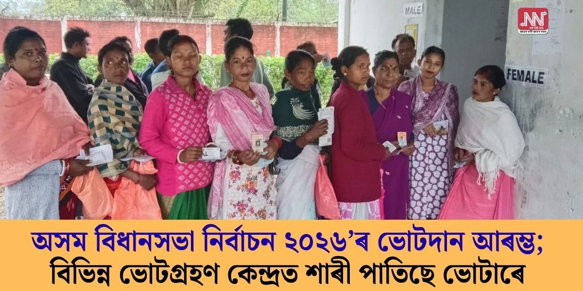 অসম বিধানসভা নিৰ্বাচন ২০২৬’ৰ ভোটদান আৰম্ভ; বিভিন্ন ভোটগ্ৰহণ কেন্দ্ৰত শাৰী পাতিছে ভোটাৰে