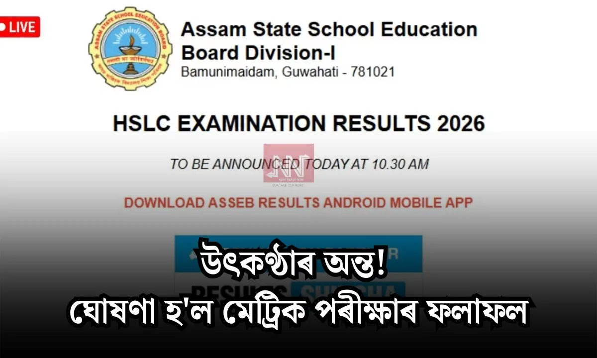অসম ৰাজ্যিক বিদ্যালয় শিক্ষা পৰিষদ (ASSEB)-ৰ অধীনত চলিত বৰ্ষত অনুষ্ঠিত হোৱা হাইস্কুল শিক্ষান্ত পৰীক্ষা ২০২৬-ৰ ফলাফল আজি আনুষ্ঠানিকভাৱে ঘোষণা কৰা হৈছে। ছেবাৰ পৰিৱৰ্তে সম্পূৰ্ণ নতুন নিয়মেৰে অনুষ্ঠিত হোৱা এইবাৰৰ পৰীক্ষাত সামগ্ৰিকভাৱে ৬৫.৬২ শতাংশ শিক্ষাৰ্থীয়ে উত্তীৰ্ণৰ সফলতা অৰ্জন কৰিছে। পৰীক্ষাৰ্থীসকলে যাতে কোনো ধৰণৰ অসুবিধা নোহোৱাকৈ নিৰিবিলিভাৱে নিজৰ ফলাফল চাব পাৰে, তাৰ বাবে পৰিষদে ১৬টাকৈ সুকীয়া ৱেবছাইটত […] The post উৎকণ্ঠাৰ অন্ত! ঘোষণা হ’ল মেট্ৰিক পৰীক্ষাৰ ফলাফল appeared first on NORTHEAST NOW (Assamese) .