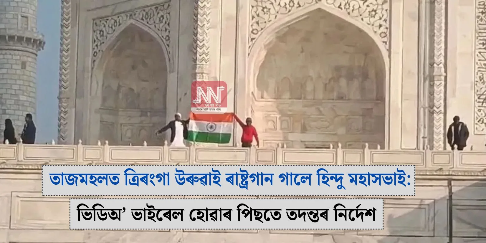 গণতন্ত্ৰ দিৱসৰ দিনাই বিশ্ববিখ্যাত কীৰ্তিচিহ্ন তাজমহলৰ চৌহদত এক চাঞ্চল্যকৰ ঘটনা সংঘটিত হৈছে। তাজমহলৰ নিৰাপত্তা বেষ্টনী অতিক্ৰমি একাংশ লোকে ৰাষ্ট্ৰীয় পতাকা উত্তোলন কৰাৰ লগতে ৰাষ্ট্ৰগান পৰিৱেশন কৰি ‘ভাৰত মাতা কী জয়’ শ্ল’গান দিয়ে। এই সমগ্ৰ কাৰ্যসূচীৰ এটা ভিডিঅ’ ছচিয়েল মিডিয়াত ভাইৰেল হোৱাৰ লগে লগে তীব্ৰ বিতৰ্কৰ সৃষ্টি হৈছে আৰু প্ৰশাসনে ইতিমধ্যে ঘটনাটোৰ তদন্তৰ নিৰ্দেশ দিছে। জানিব […] The post তাজমহলত ত্ৰিৰংগা উৰুৱাই ৰাষ্ট্ৰগান গালে হিন্দু মহাসভাই: ভিডিঅ’ ভাইৰেল হোৱাৰ পিছতে তদন্তৰ নিৰ্দেশ appeared first on NORTHEAST NOW (Assamese) .