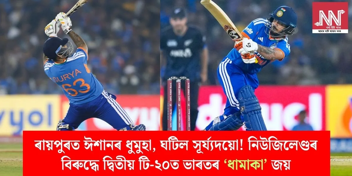 ৰায়পুৰত ঈশানৰ ধুমুহা, ঘটিল সূৰ্য্যদয়ো! নিউজিলেণ্ডৰ বিৰুদ্ধে দ্বিতীয় টি-২০ত ভাৰতৰ ‘ধামাকা’ জয়