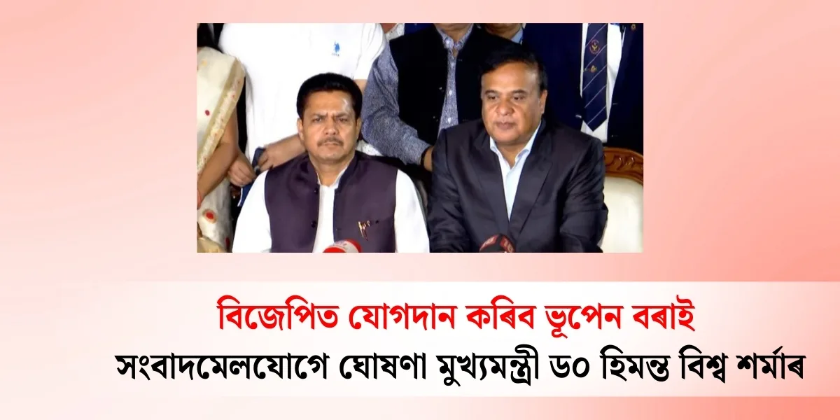 বিজেপিত যোগদান কৰিব ভূপেন বৰাই : সংবাদমেলযোগে ঘোষণা মুখ্যমন্ত্ৰী ড০ হিমন্ত বিশ্ব শৰ্মাৰ