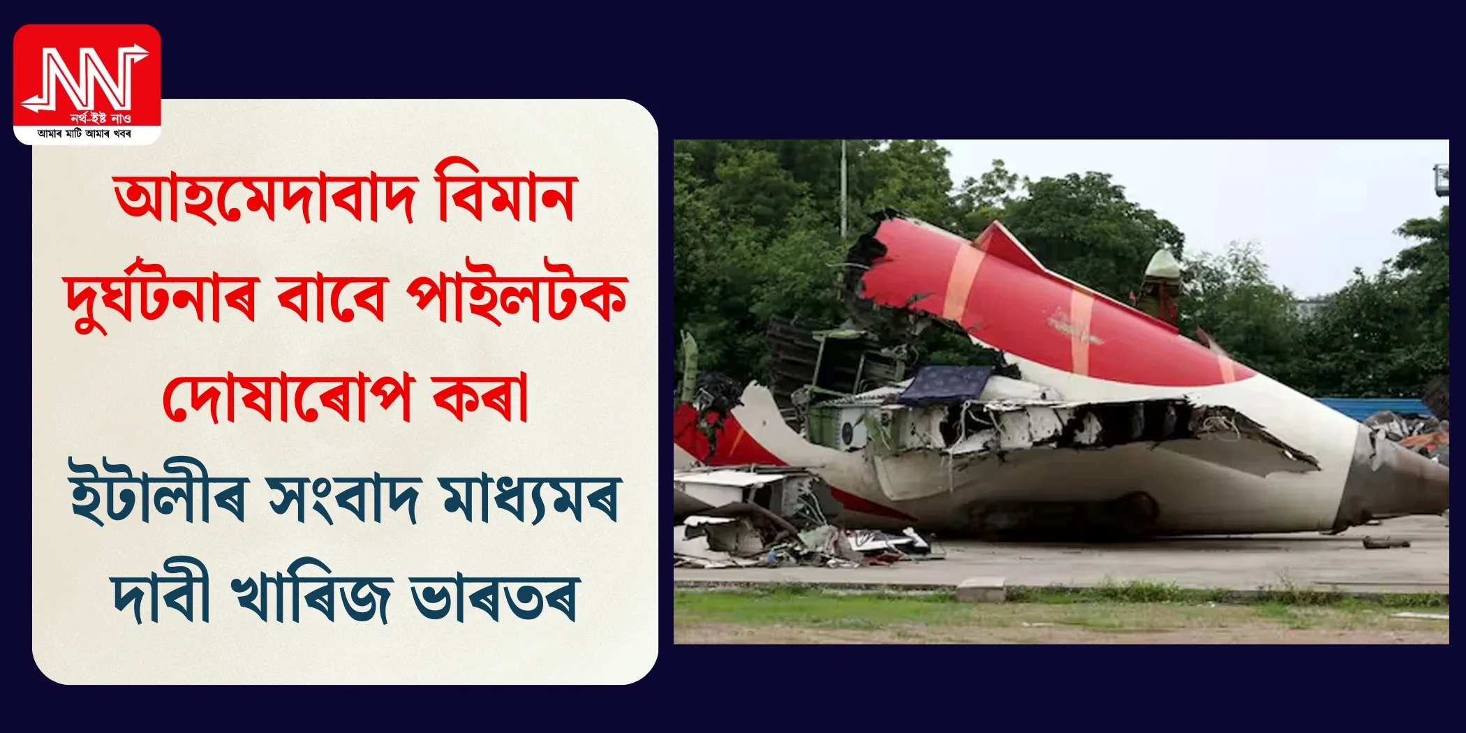 আহমেদাবাদত সংঘটিত হোৱা এয়াৰ ইণ্ডিয়াৰ শোকাৱহ বিমান দুৰ্ঘটনাৰ তদন্তক লৈ সম্প্ৰতি এক উত্তপ্ত পৰিস্থিতিৰ সৃষ্টি হৈছে। শেহতীয়াকৈ ইটালীৰ এখন আগশাৰীৰ দৈনিক কাকত ক’ৰিয়েৰ ডেলা চেৰাত প্ৰকাশিত এটা বিস্ফোৰক প্ৰতিবেদনত দাবী কৰা হৈছিল যে এই দুৰ্ঘটনাটো কোনো যান্ত্ৰিক বিজুতি নাছিল, বৰঞ্চ পাইলটে ইচ্ছাকৃতভাৱে বিমানখনৰ ইন্ধনৰ চুইচ বন্ধ কৰি দিছিল। ইয়াৰ ফলতেই বিমানখন দুৰ্ঘটনাগ্ৰস্ত হৈছিল বুলি কাকতখনত […] The post আহমেদাবাদ বিমান দুৰ্ঘটনাৰ বাবে পাইলটক দোষাৰোপ কৰা ইটালীৰ সংবাদ মাধ্যমৰ দাবী খাৰিজ ভাৰতৰ appeared first on NORTHEAST NOW (Assamese) .