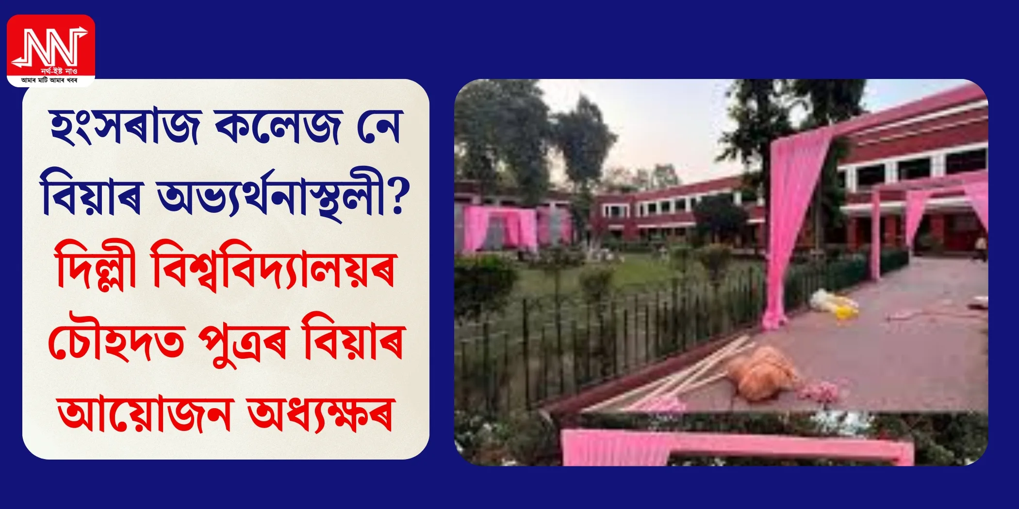 দিল্লী বিশ্ববিদ্যালয়ৰ অন্যতম আগশাৰীৰ শিক্ষানুষ্ঠান হংসৰাজ কলেজত এতিয়া শিক্ষাৰ পৰিৱেশৰ সলনি বিয়াৰ উখল-মাখল পৰিৱেশ দেখা গৈছে। কলেজ চৌহদত গোলাপী আৰু বগা ৰঙৰ তম্বু, আলোকসজ্জা আৰু বিয়াৰ বিশাল আয়োজনে এতিয়া সাধাৰণ ছাত্ৰ-ছাত্ৰীৰ মাজত তীব্ৰ ক্ষোভৰ সৃষ্টি কৰিছে। কলেজৰ অধ্যক্ষ ৰামা শৰ্মাৰ পুত্ৰৰ বিবাহৰ বাবে সমগ্ৰ কেম্পাছটোক এটা ব্যক্তিগত বিবাহ ভৱনলৈ ৰূপান্তৰ কৰাৰ অভিযোগ উত্থাপন হৈছে। ইয়াৰ […] The post হংসৰাজ কলেজ নে বিয়াৰ অভ্যৰ্থনাস্থলী? দিল্লী বিশ্ববিদ্যালয়ৰ চৌহদত পুত্ৰৰ বিয়াৰ আয়োজন অধ্যক্ষৰ appeared first on NORTHEAST NOW (Assamese) .