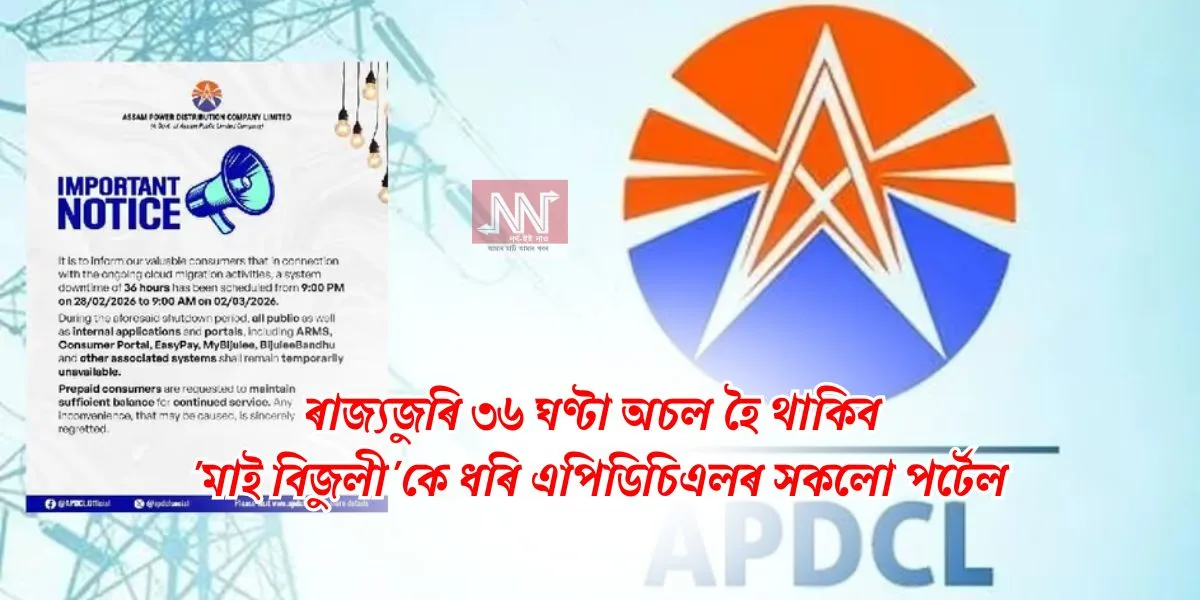 ৰাজ্যজুৰি ৩৬ ঘণ্টা অচল হৈ থাকিব ‘মাই বিজুলী’কে ধৰি এপিডিচিএলৰ সকলো পৰ্টেল