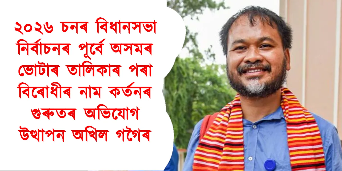 অসমৰ ৰাজনৈতিক মহলত বৰ্তমান এক ডাঙৰ চাঞ্চল্যৰ সৃষ্টি হৈছে। ৰাইজৰ দলৰ সভাপতি অখিল গগৈয়ে ভাৰতীয় নিৰ্বাচন আয়োগৰ ওচৰত এক আনুষ্ঠানিক অভিযোগ দাখিল কৰিছে। তেওঁৰ মতে আগন্তুক ২০২৬ চনৰ বিধানসভা নিৰ্বাচনৰ পূৰ্বে শাসনত থকা ভাৰতীয় জনতা পাৰ্টিয়ে এক ষড়যন্ত্ৰ ৰচনা কৰি বিৰোধী দলৰ সমৰ্থকসকলৰ নাম ভোটাৰ তালিকাৰ পৰা অবৈধভাৱে আঁতৰাই দিবলৈ চেষ্টা কৰিছে। গগৈৰ এই অভিযোগে […] The post ২০২৬ চনৰ বিধানসভা নিৰ্বাচনৰ পূৰ্বে অসমৰ ভোটাৰ তালিকাৰ পৰা বিৰোধীৰ নাম কৰ্তনৰ গুৰুতৰ অভিযোগ উত্থাপন অখিল গগৈৰ appeared first on NORTHEAST NOW (Assamese) .