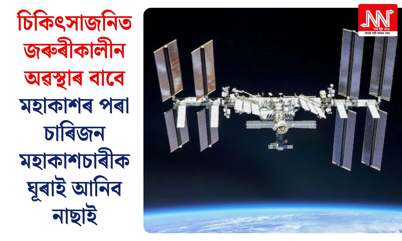 ২০২৬ চনৰ ৮ জানুৱাৰীত এক গুৰুত্বপূৰ্ণ ঘোষণাৰ জৰিয়তে নাছাই আন্তঃৰাষ্ট্ৰীয় মহাকাশ কেন্দ্ৰৰ পৰা চাৰিজন মহাকাশচাৰীক অনাগত দিনবোৰত পৃথিৱীলৈ ঘূৰাই অনাৰ সিদ্ধান্ত লৈছে। ক্ৰু-১১ মিছনৰ অংশ হিচাপে মহাকাশ কেন্দ্ৰত থকা এজন মহাকাশচাৰীৰ হঠাতে দেখা দিয়া স্বাস্থ্যজনিত সমস্যাৰ বাবেই এই জৰুৰী সিদ্ধান্ত গ্ৰহণ কৰা হৈছে। যাৰ ফলত পূৰ্ব নিৰ্ধাৰিত বহুতো গুৰুত্বপূৰ্ণ মহাকাশ যাত্ৰা আৰু গৱেষণা অনিৰ্দিষ্টকাললৈ পিছুৱাই […] The post চিকিৎসাজনিত জৰুৰীকালীন অৱস্থাৰ বাবে মহাকাশৰ পৰা চাৰিজন মহাকাশচাৰীক ঘূৰাই আনিব নাছাই appeared first on NORTHEAST NOW (Assamese) .