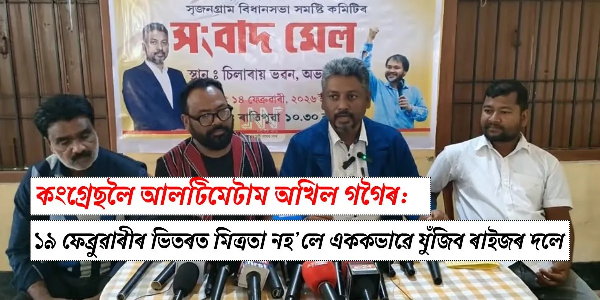 কংগ্ৰেছলৈ আলটিমেটাম অখিল গগৈৰ: ১৯ ফেব্ৰুৱাৰীৰ ভিতৰত মিত্ৰতা নহ’লে এককভাৱে যুঁজিব ৰাইজৰ দলে