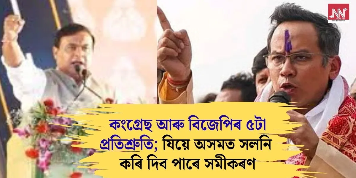 কংগ্ৰেছ আৰু বিজেপিৰ ৫টা প্ৰতিশ্ৰুতি; যিয়ে অসমত সলনি কৰি দিব পাৰে সমীকৰণ