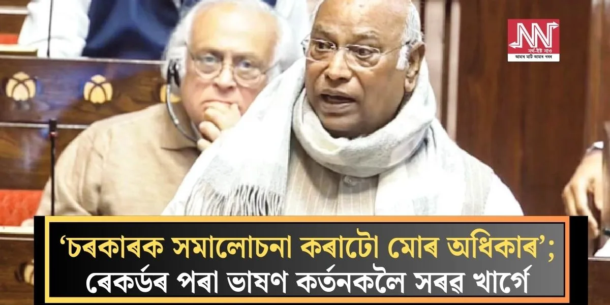 ৰাজ্যসভাৰ বিৰোধী নেতা হিচাপে চৰকাৰ আৰু প্ৰধানমন্ত্ৰী মোডীৰ নীতিক সমালোচনা কৰাটো মোৰ অধিকাৰ। অৱশ্যে তাৰ বাবেই মোৰ ভাষণৰ এক বৃহৎ অংশ ৰেকৰ্ডৰ পৰা কাটি পেলোৱা হৈছে। শুকুৰবাৰে এই অভিযোগ উত্থাপন কৰে কংগ্ৰেছৰ সভাপতি মল্লিকাৰ্জুন খাৰ্গেই। জিৰ’ আৱাৰৰ পিছত তেওঁ এই বিষয়টো উত্থাপন কৰে। ৰাজ্যসভাৰ বিৰোধী নেতাই তেওঁৰ ভাষণৰ কৰ্তন কৰা অংশ সদনৰ ৰেকৰ্ডত অন্তৰ্ভুক্ত কৰিবলৈ […] The post ‘চৰকাৰক সমালোচনা কৰাটো মোৰ অধিকাৰ’; ৰেকৰ্ডৰ পৰা ভাষণ কৰ্তনকলৈ সৰৱ খাৰ্গে appeared first on NORTHEAST NOW (Assamese) .