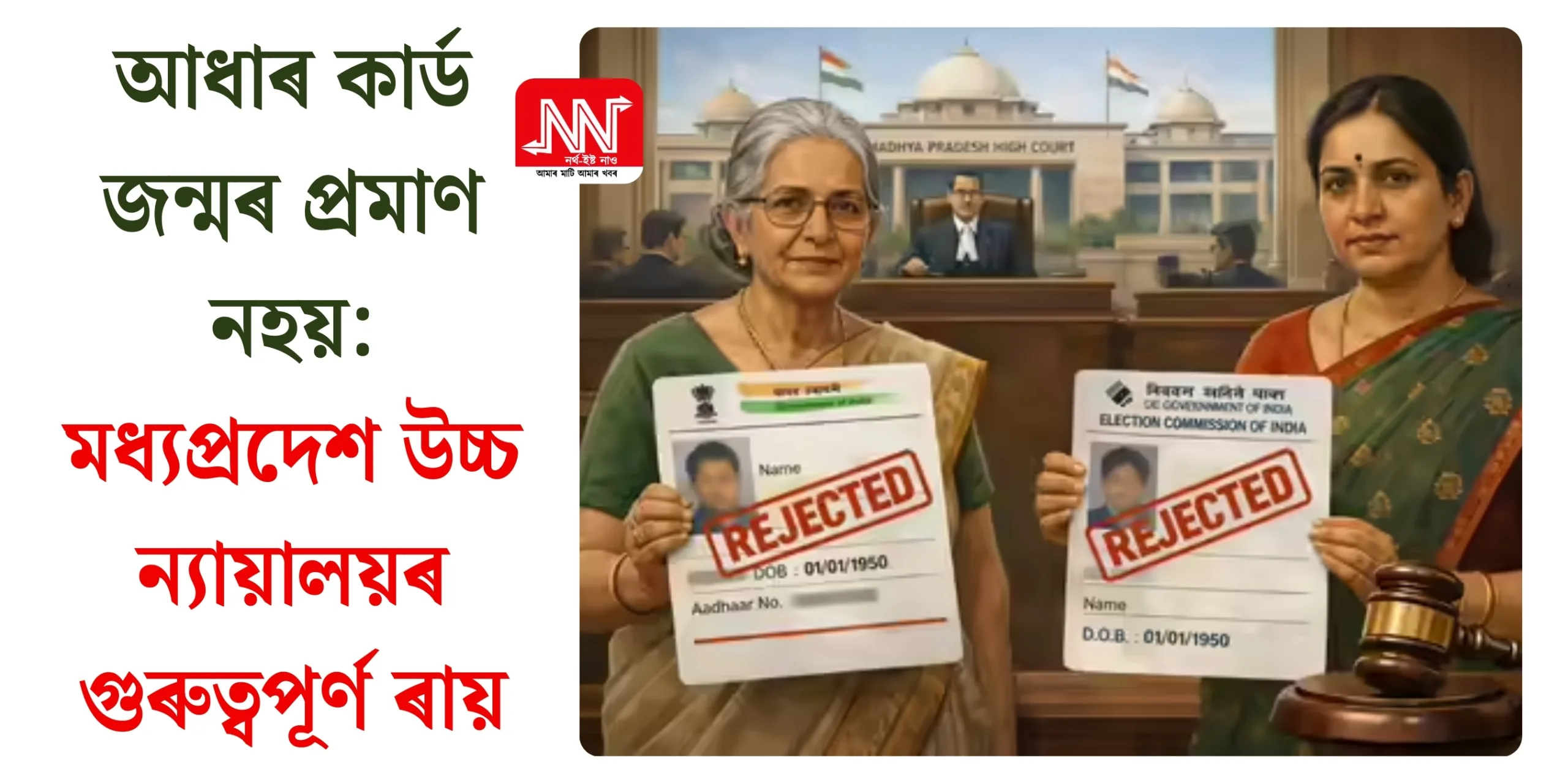 আধাৰ কাৰ্ড আৰু ভোটাৰ কাৰ্ডক লৈ দেশত এক নতুন বিতৰ্কই গা কৰি উঠিছে। শেহতীয়াকৈ মধ্যপ্ৰদেশ উচ্চ ন্যায়ালয়ে এক গুৰুত্বপূৰ্ণ ৰায় প্ৰদান কৰি স্পষ্ট কৰি দিছে যে আধাৰ কাৰ্ড কোনো ব্যক্তিৰ জন্মৰ প্ৰামাণিক নথি হ’ব নোৱাৰে। উচ্চতম ন্যায়ালয়ে পূৰ্বতেই জনাইছিল যে আধাৰ কাৰ্ড নাগৰিকত্বৰ প্ৰমাণ নহয় আৰু নিৰ্বাচন আয়োগেও ইয়াক নাগৰিকত্বৰ একমাত্ৰ ভিত্তি হিচাপে গ্ৰহণ কৰা […] The post আধাৰ কাৰ্ড জন্মৰ প্ৰমাণ নহয়: মধ্যপ্ৰদেশ উচ্চ ন্যায়ালয়ৰ গুৰুত্বপূৰ্ণ ৰায় appeared first on NORTHEAST NOW (Assamese) .