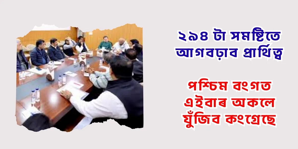 ২৯৪ টা সমষ্টিতে আগবঢ়াব প্ৰাৰ্থিত্ব : পশ্চিম বংগত এইবাৰ অকলে যুঁজিব কংগ্ৰেছে