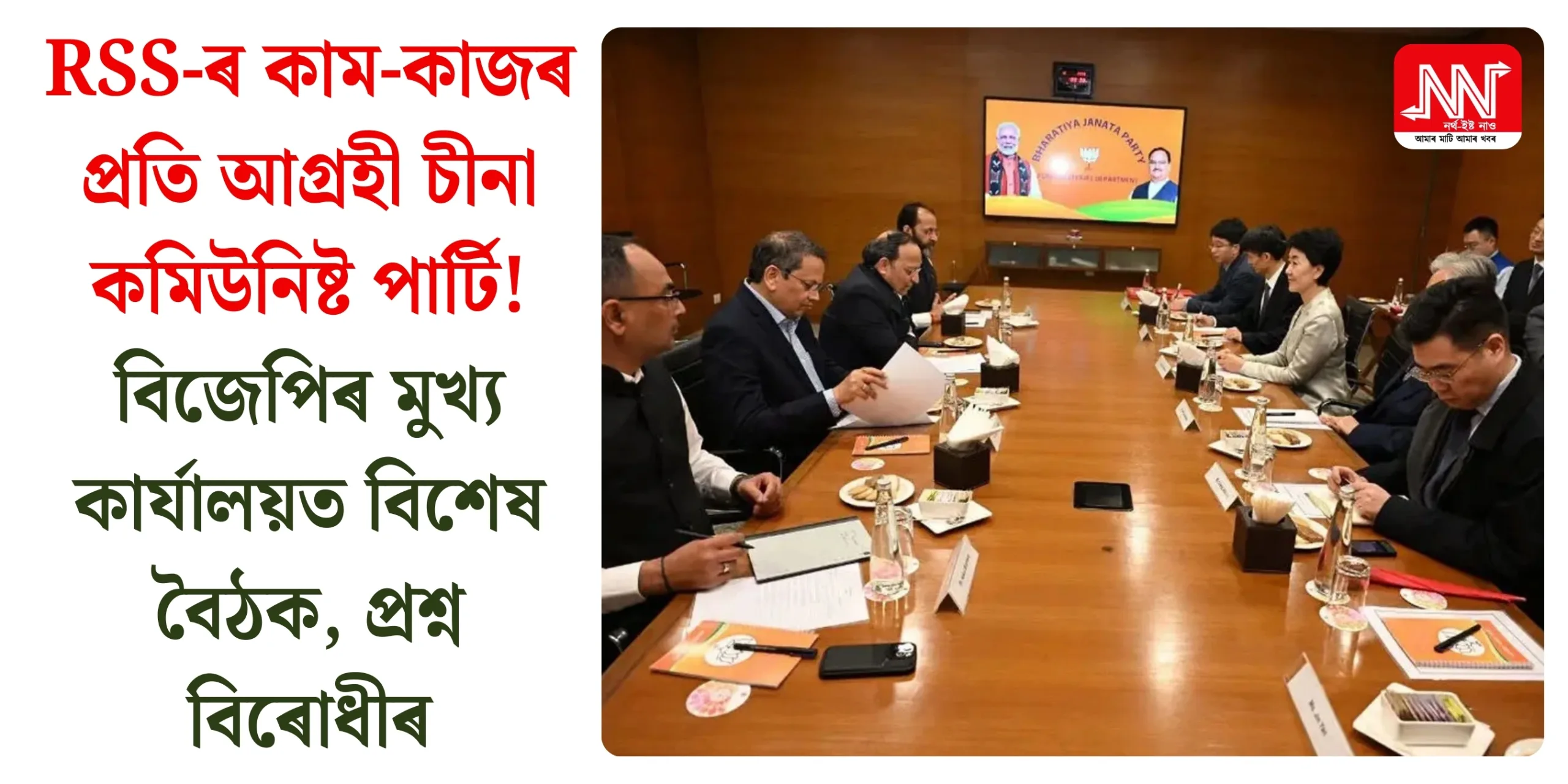 দিল্লীত শেহতীয়াভাৱে এক গুৰুত্বপূৰ্ণ তথা ৰাজনৈতিকভাৱে তাৎপৰ্যপূৰ্ণ ঘটনা সংঘটিত হৈছে। চীনৰ কমিউনিষ্ট পাৰ্টিৰ এটা উচ্চস্তৰীয় প্ৰতিনিধি দলে দিল্লীৰ বিজেপি মুখ্য কাৰ্যালয়ত উপস্থিত হৈ দলটোৰ শীৰ্ষ নেতৃত্বৰ সৈতে বৈঠকত মিলিত হয়। চীনৰ কমিউনিষ্ট পাৰ্টিৰ আন্তঃৰাষ্ট্ৰীয় বিভাগৰ উপ-মন্ত্ৰী ছুন হাইয়ানৰ নেতৃত্বত অহা এই দলটোৱে বিজেপিৰ ৰাষ্ট্ৰীয় সাধাৰণ সম্পাদক অৰুণ সিং আৰু বৈদেশিক পৰিক্ৰমা মুৰব্বী বিজয় চৌথাইৱালেৰ সৈতে […] The post RSS-ৰ কাম-কাজৰ প্ৰতি আগ্ৰহী চীনা কমিউনিষ্ট পাৰ্টি! বিজেপিৰ মুখ্য কাৰ্যালয়ত বিশেষ বৈঠক, প্ৰশ্ন উত্থাপন বিৰোধীৰ appeared first on NORTHEAST NOW (Assamese) .