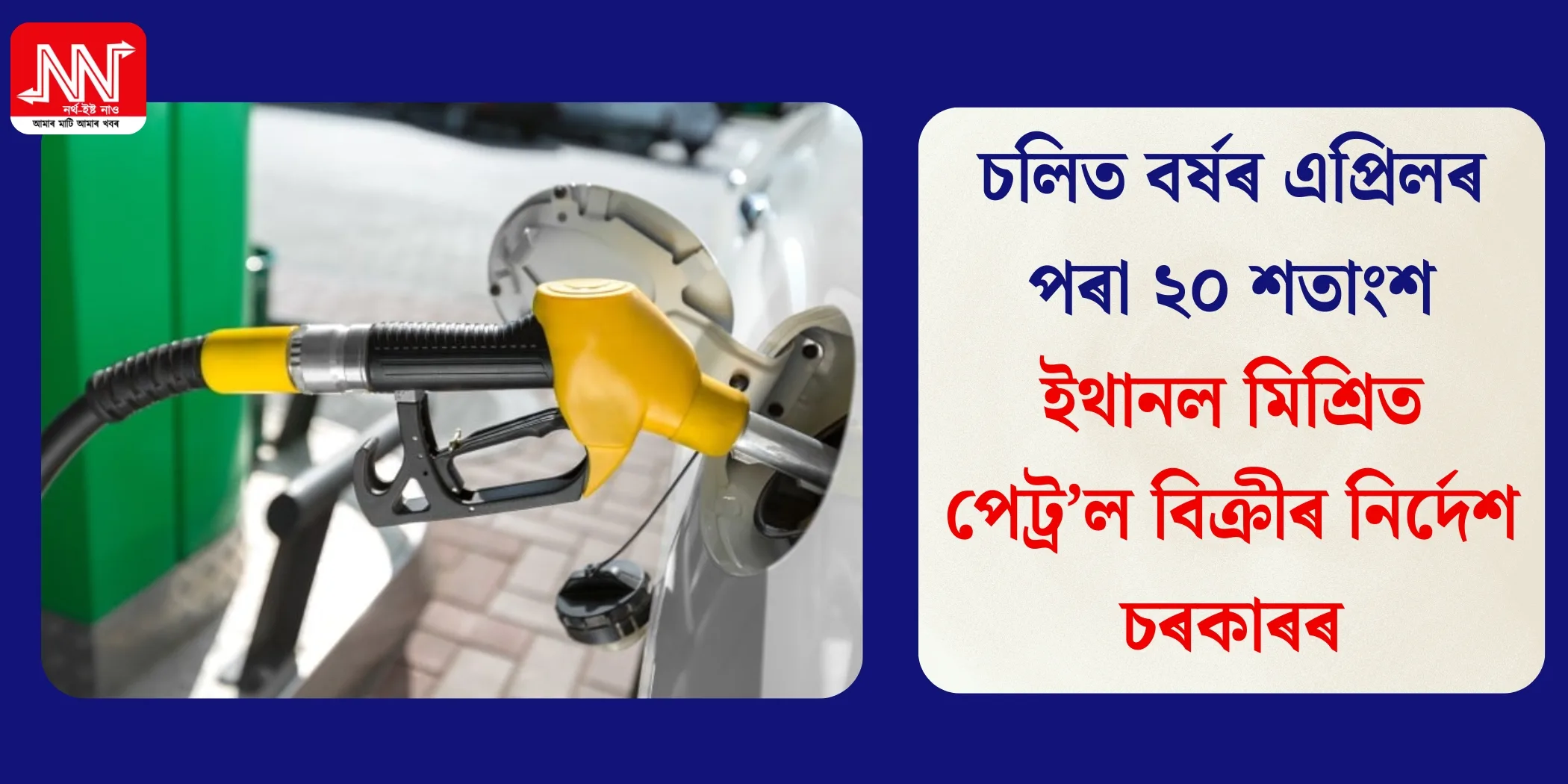 চলিত বৰ্ষৰ এপ্ৰিলৰ পৰা ২০ শতাংশ ইথানল মিশ্ৰিত পেট্ৰ’ল বিক্ৰীৰ নিৰ্দেশ চৰকাৰৰ