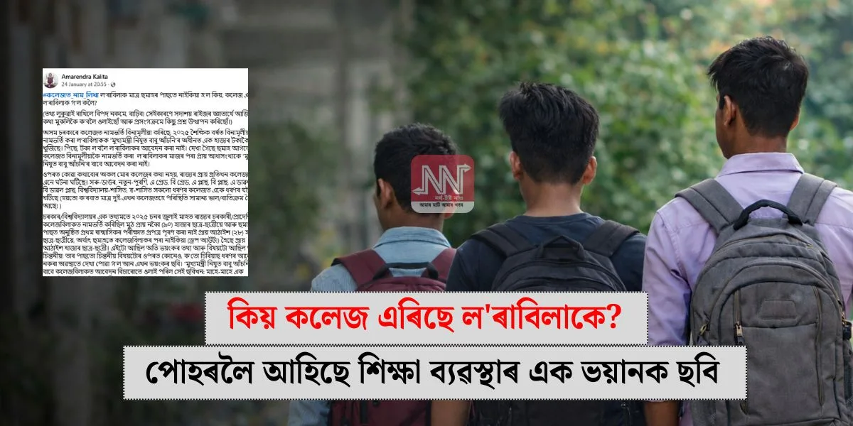 অসমৰ উচ্চ শিক্ষা ক্ষেত্ৰত শেহতীয়াকৈ এক উদ্বেগজনক ছবি পোহৰলৈ আহিছে। গুৱাহাটীৰ ললিত চন্দ্ৰ ভৰালী মহাবিদ্যালয়ৰ অধ্যক্ষ অমৰেন্দ্ৰ কলিতাই ৰাজ্যৰ মহাবিদ্যালয়সমূহৰ পৰা বৃহৎ সংখ্যক ছাত্ৰ-ছাত্ৰীয়ে শিক্ষা আধাতে ত্যাগ কৰা (ড্ৰপ-আউট) ঘটনাক লৈ গুৰুতৰ প্ৰশ্ন উত্থাপন কৰিছে। তেওঁৰ মতে, চৰকাৰী সা-সুবিধা তথা সাহায্যৰ পাছতো ছাত্ৰসকলৰ মহাবিদ্যালয় ত্যাগ কৰাৰ এই প্ৰৱণতাই এক গভীৰ সামাজিক সংকটৰ ইংগিত দিছে। সামাজিক […] The post কিয় কলেজ এৰিছে ল’ৰাবিলাকে? পোহৰলৈ আহিছে শিক্ষা ব্যৱস্থাৰ এক ভয়ানক ছবি appeared first on NORTHEAST NOW (Assamese) .